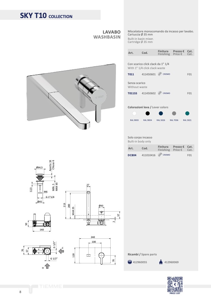 Built-in basin mixer.
