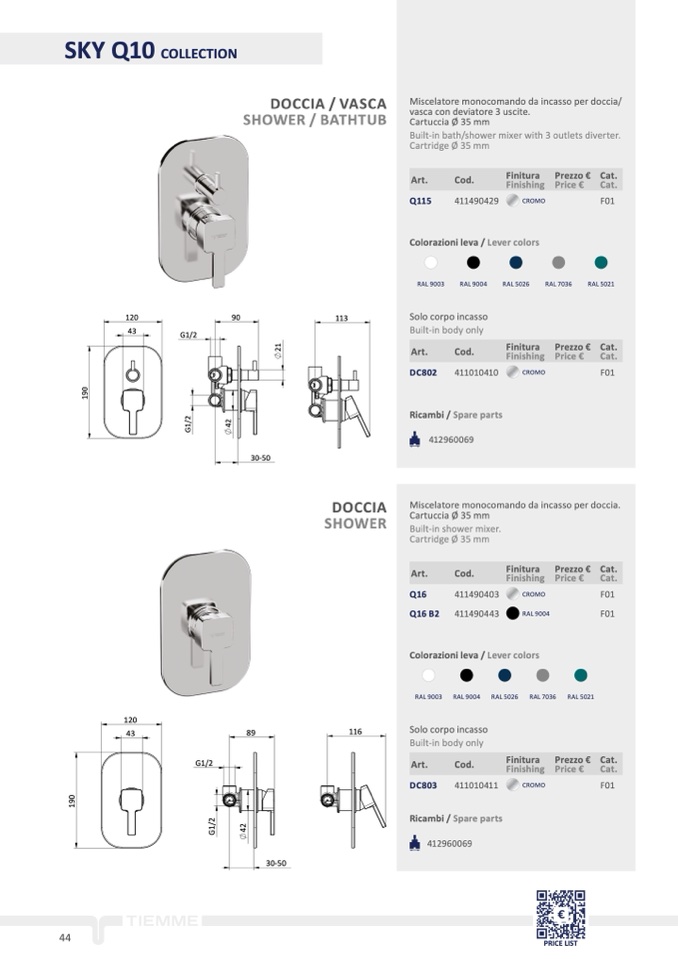 Miscelatore monocomando da incasso per doccia/