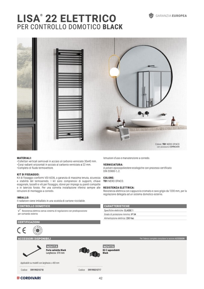 Istruzioni d’uso e manutenzione a corredo.