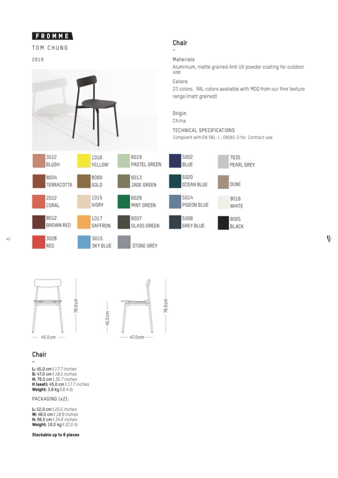 H (seat): 45.0 cm I 17.7 inches