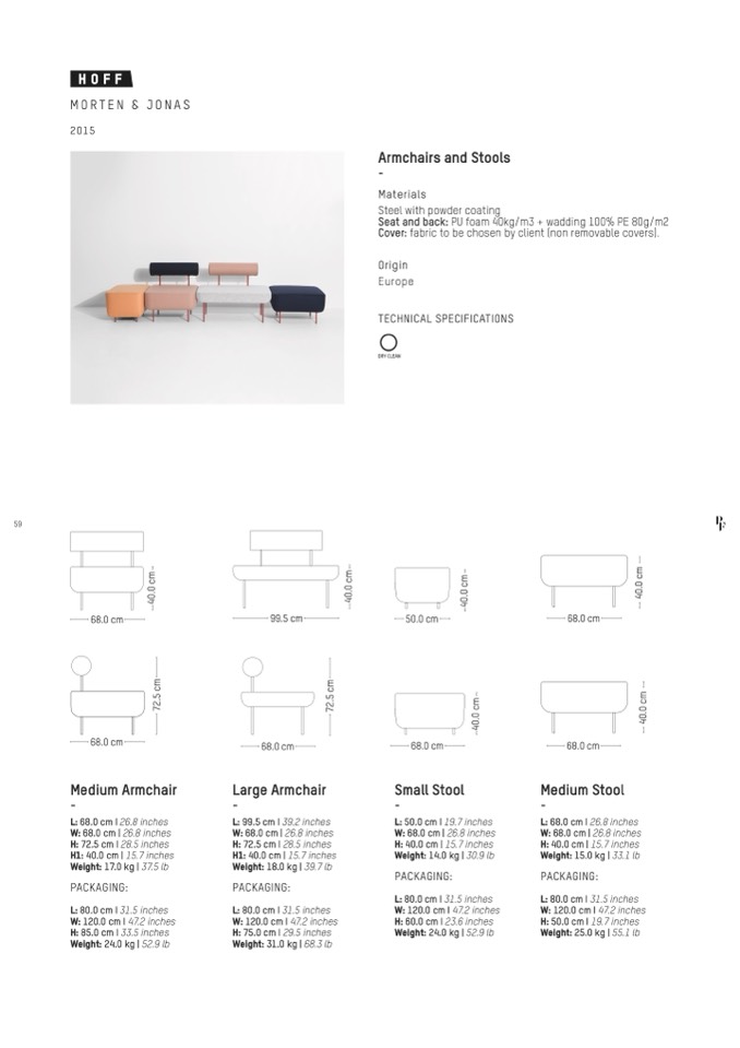 Seat and back: PU foam 40kg/m3 + wadding 100% PE 80g/m2