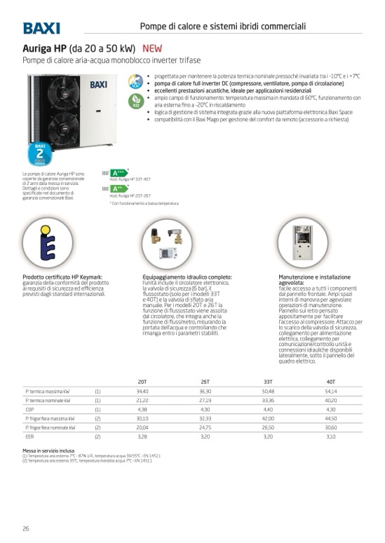 (1) Temperatura aria esterna 7°C – 87% U.R., temperatura acqua 30/35°C – EN 14511