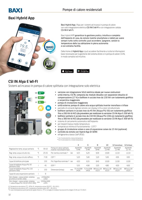 fino a 200 litri di ACS (da prevedere per realizzare la versione CSI IN Alya E 200 WI-FI)