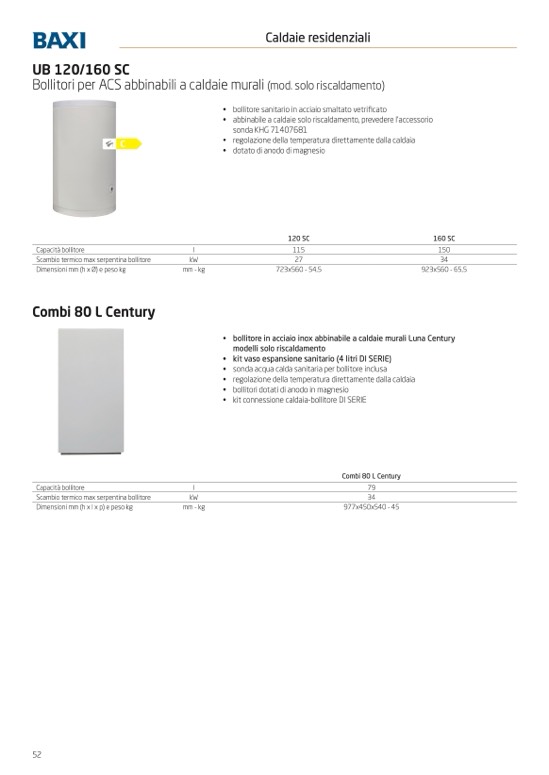 • bollitore in acciaio inox abbinabile a caldaie murali Luna Century