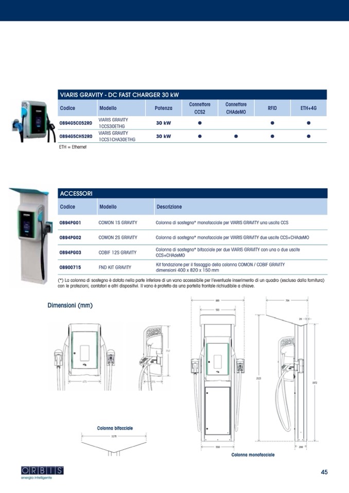 Colonna di sostegno* monofacciale per VIARIS GRAVITY due uscite CCS+CHAdeMO