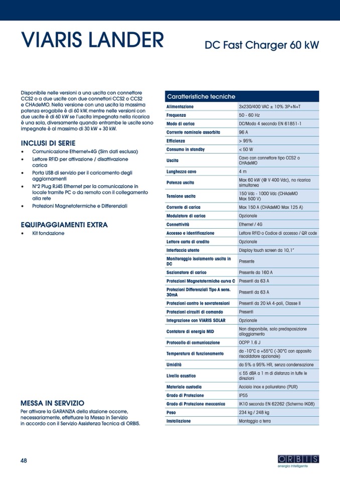 Max 60 kW (@ V 400 Vdc), no ricarica