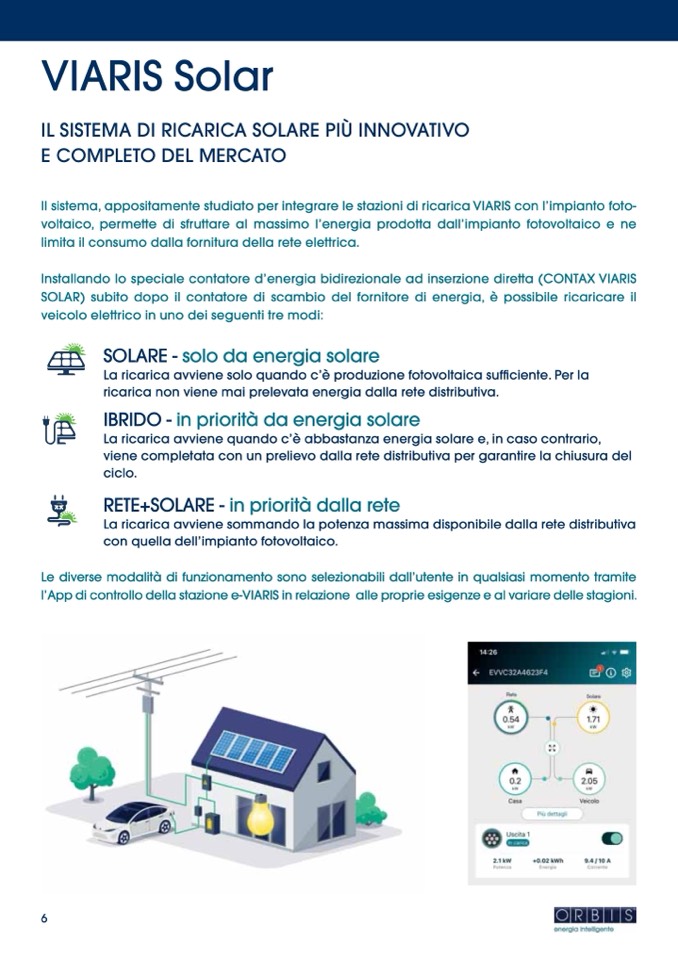 Il sistema, appositamente studiato per integrare le stazioni di ricarica VIARIS con l’impianto foto-