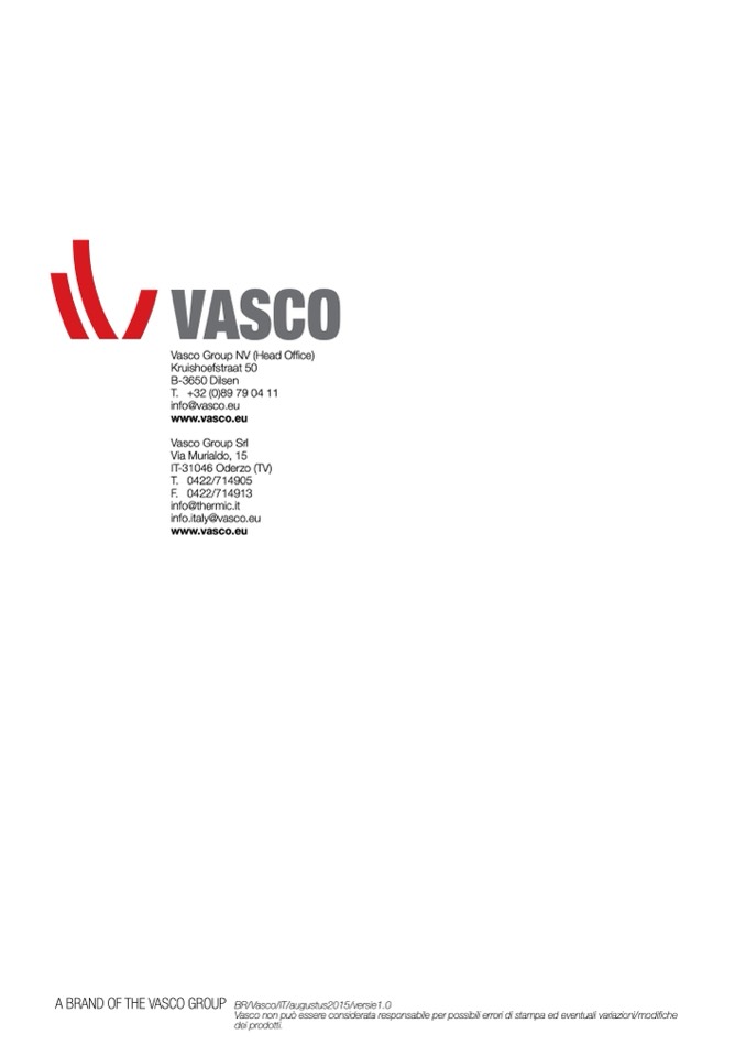 Vasco non può essere considerata responsabile per possibili errori di stampa ed eventuali variazioni/modifiche
