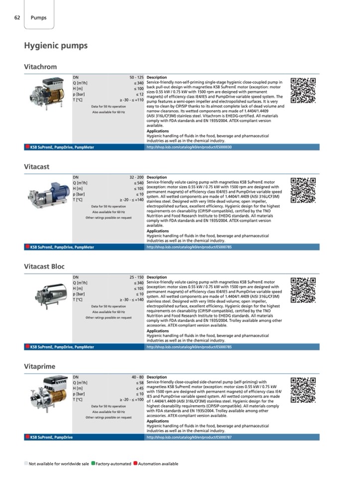 (AISI 316L/CF3M) stainless steel. Vitachrom is EHEDG-certified. All materials