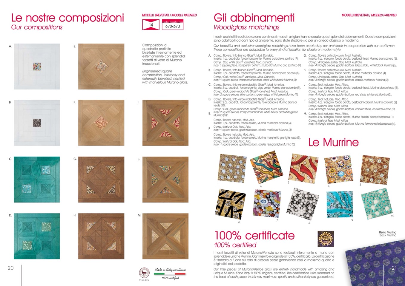 unique Murrine. Each inlay is 100% original, certified. The certification is fire stamped on