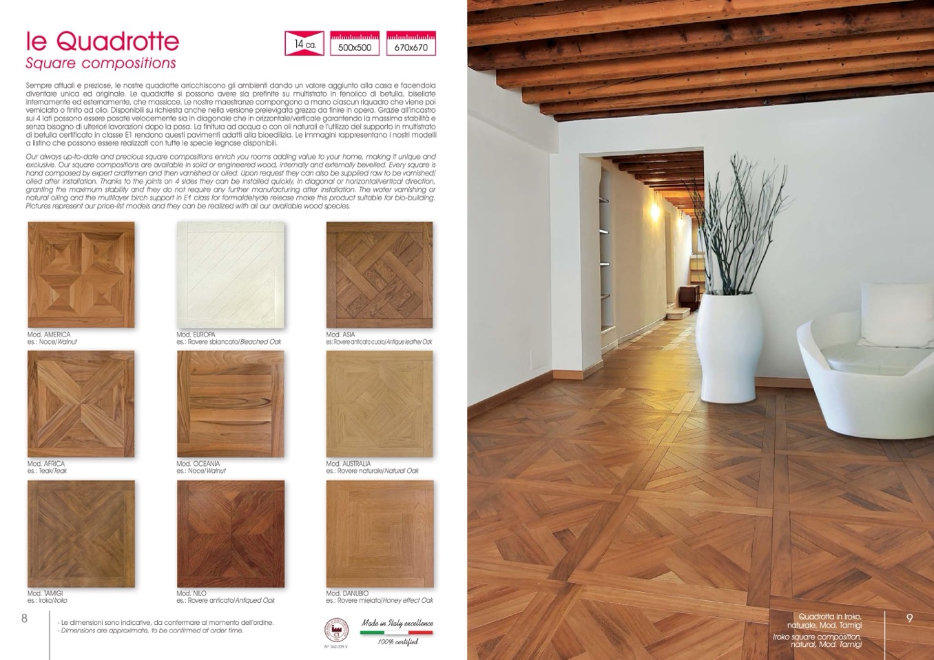 exclusive. Our square compositions are available in solid or engineered wood, internally and externally bevelled. Every square is