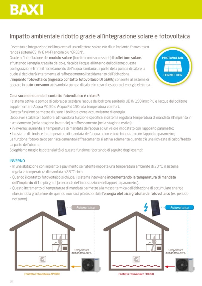 - Quando il contatto fotovoltaico si chiude, il sistema interviene incrementando la temperatura di mandata