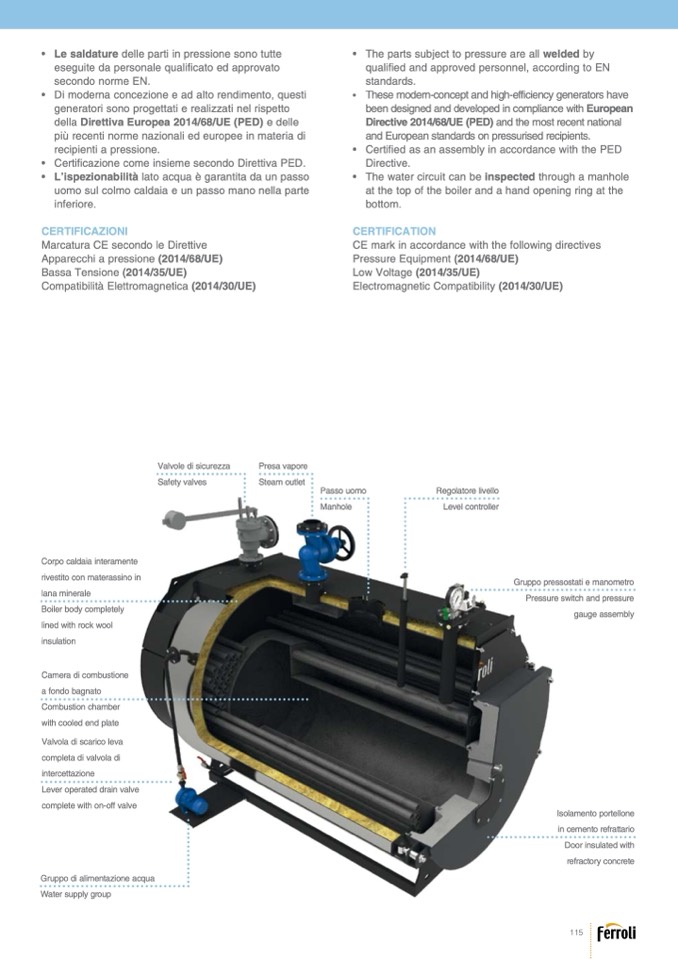 • Le saldature delle parti in pressione sono tutte