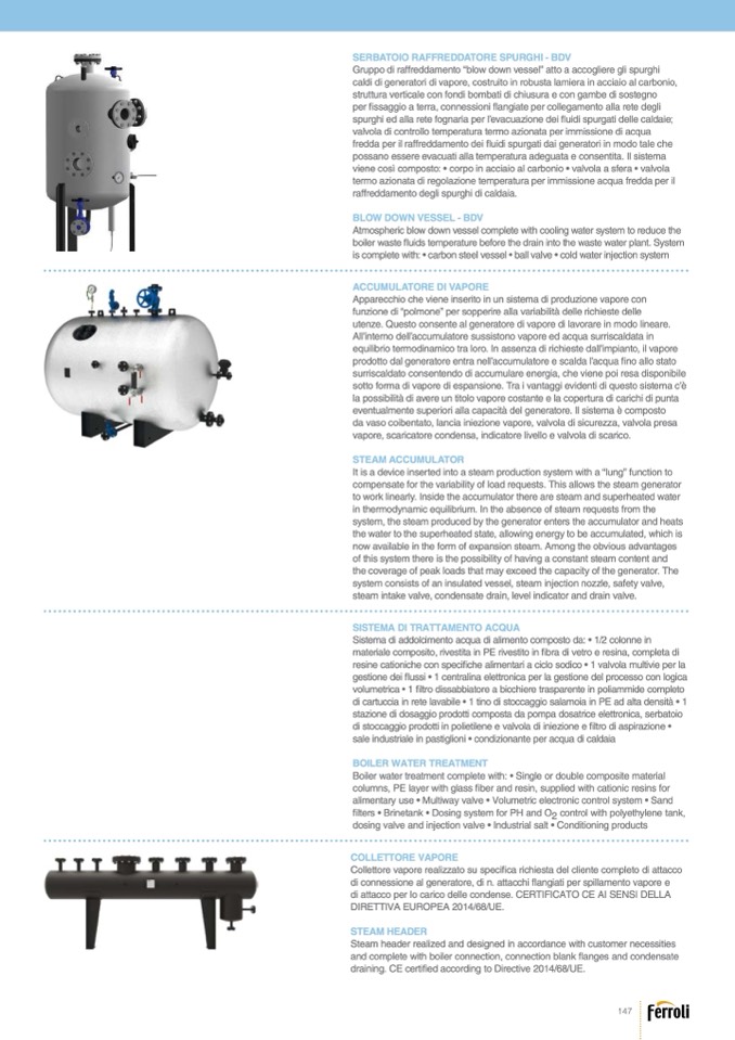 is complete with: • carbon steel vessel • ball valve • cold water injection system