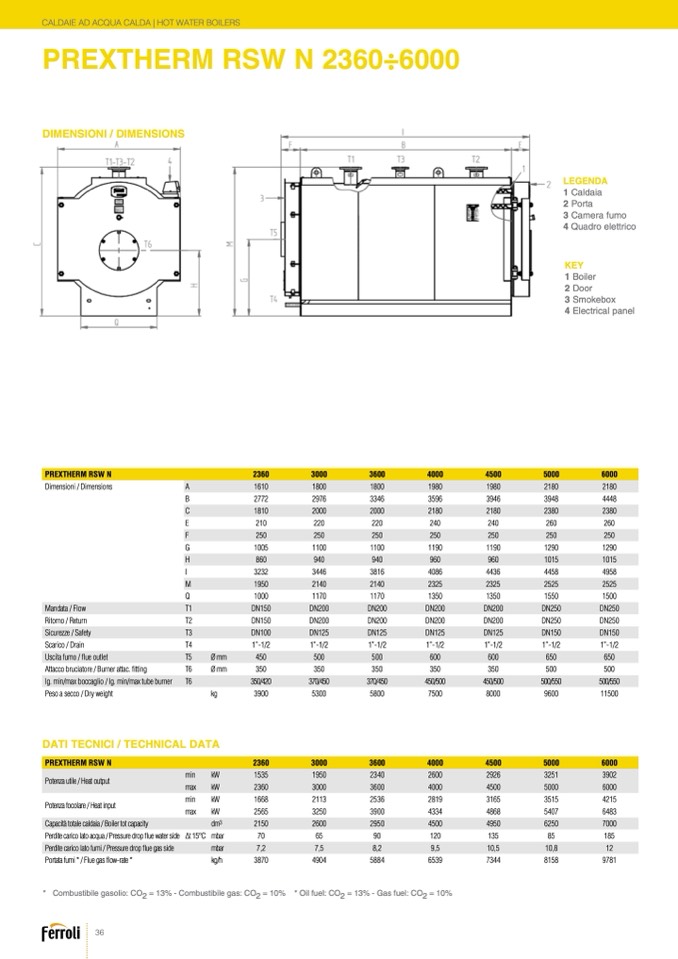 * Combustibile gasolio: CO2 = 13% - Combustibile gas: CO2 = 10%