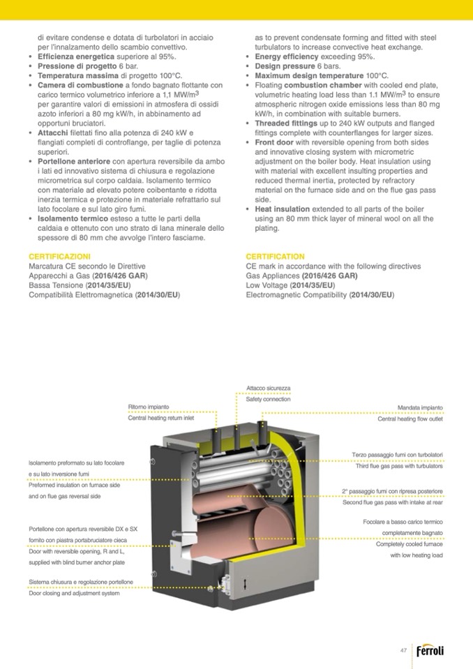 di evitare condense e dotata di turbolatori in acciaio