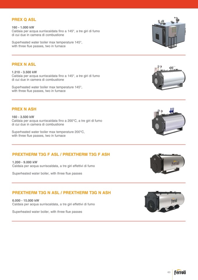 Caldaia per acqua surriscaldata fino a 145°, a tre giri di fumo