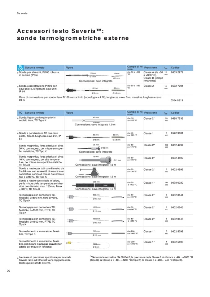 (Tipo K), la Classe a 2 -40... +1200 °C (Tipo K), la Classe 3 a -200... +40 °C (Tipo K)..