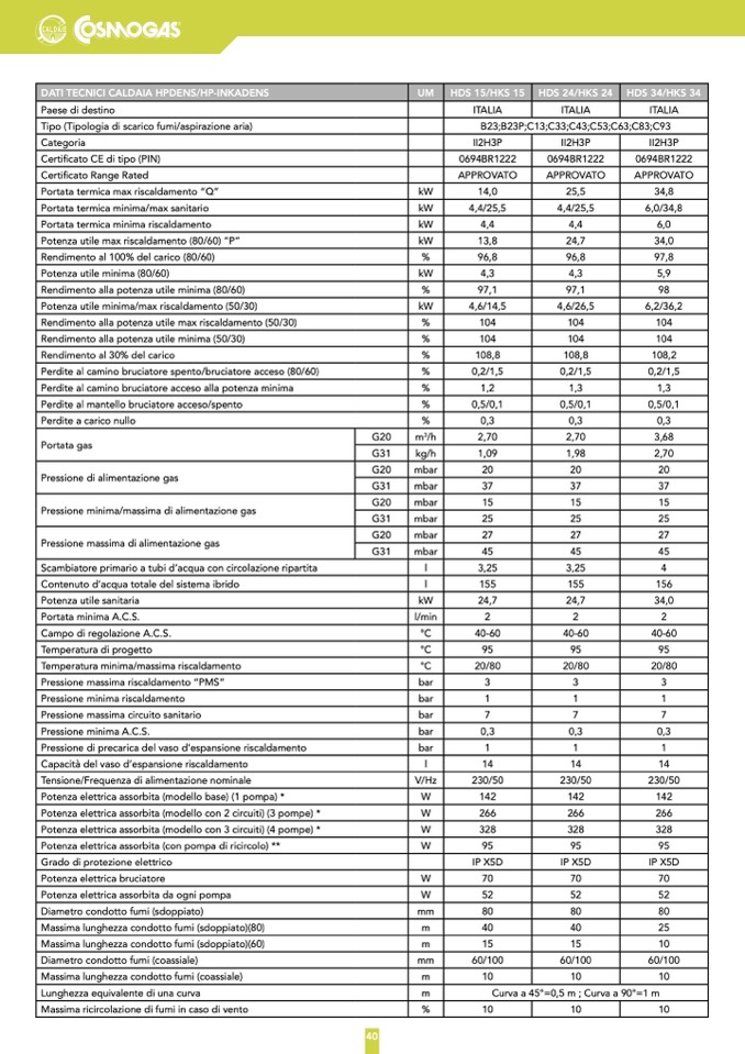 DATI TECNICI CALDAIA HPDENS/HP-INKADENS
