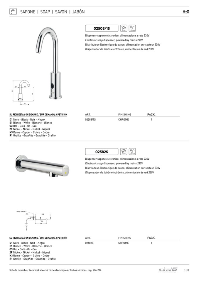 Distributeur électronique da savon, alimentation sur secteur 230V