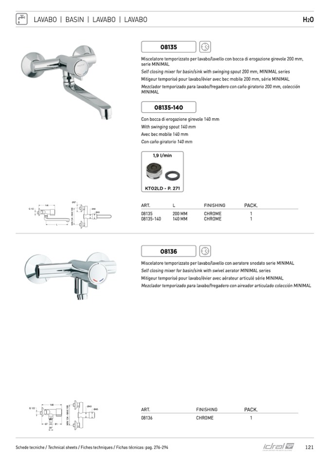 Schede tecniche / Technical sheets / Fiches techniques / Fichas técnicas: pag. 276-294