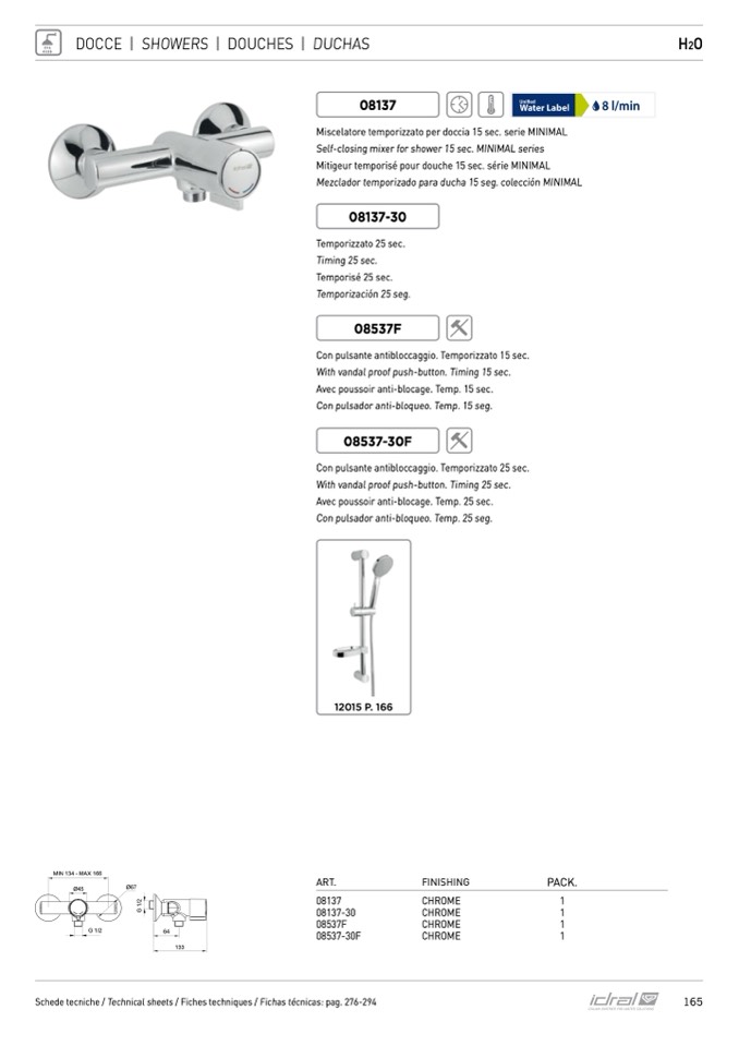 Miscelatore temporizzato per doccia 15 sec. serie MINIMAL