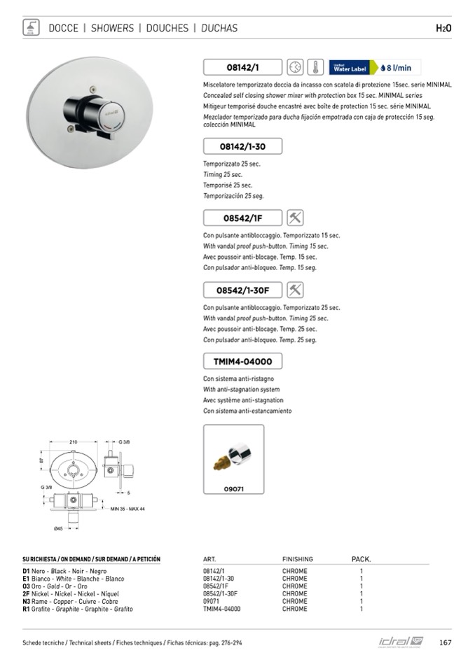 Miscelatore temporizzato doccia da incasso con scatola di protezione 15sec. serie MINIMAL