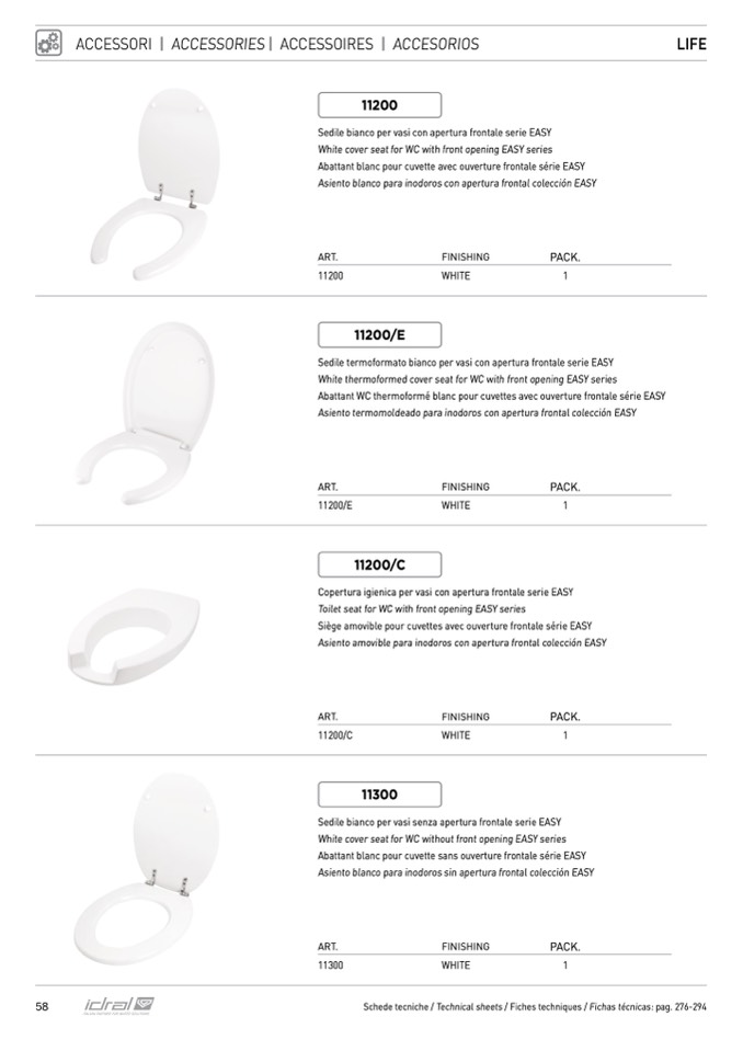 White thermoformed cover seat for WC with front opening EASY series