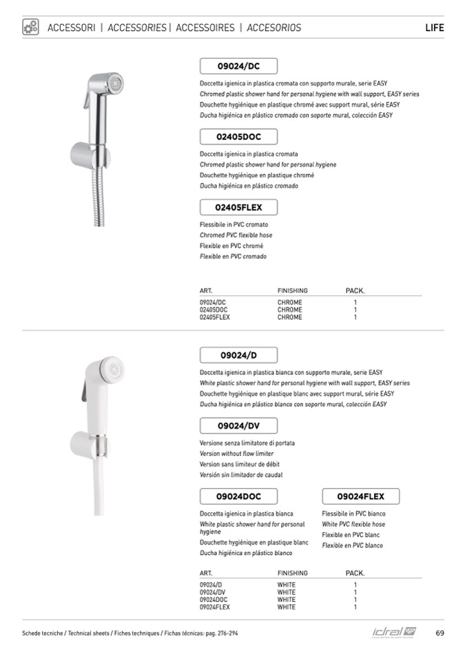 Schede tecniche / Technical sheets / Fiches techniques / Fichas técnicas: pag. 276-294