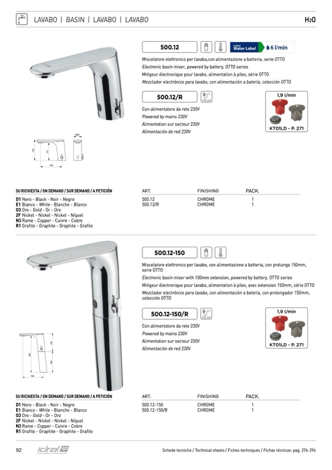 Mitigeur électronique pour lavabo, alimentation à piles, série OTTO