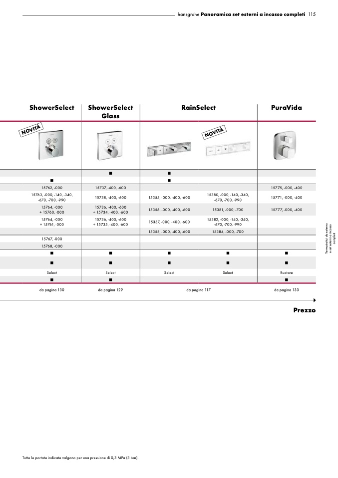 Tutte le portate indicate valgono per una pressione di 0,3 MPa (3 bar).