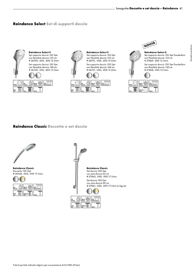 Tutte le portate indicate valgono per una pressione di 0,3 MPa (3 bar).