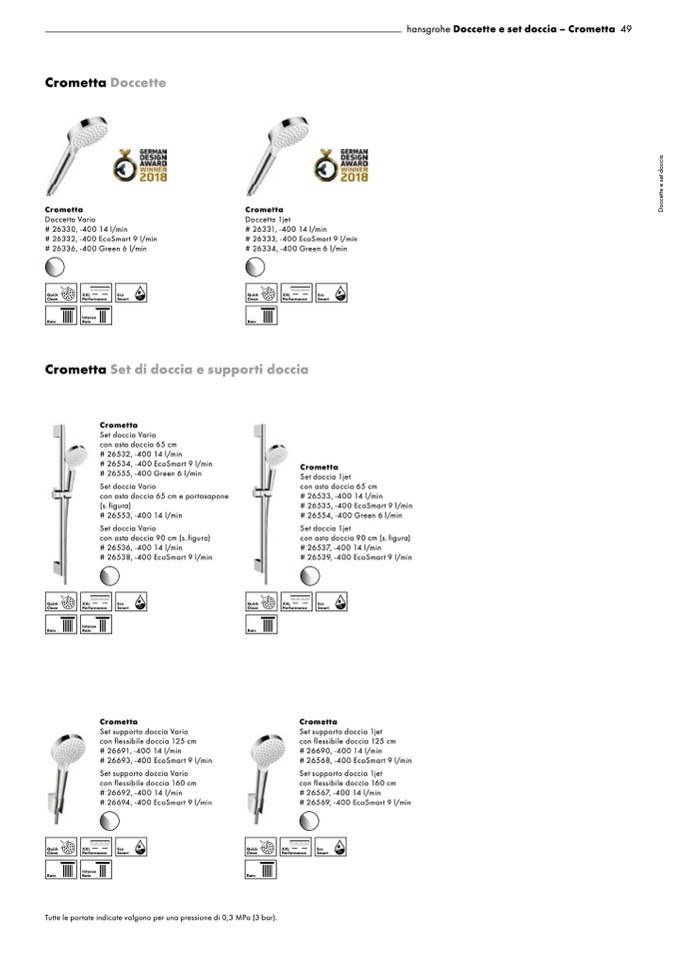 Tutte le portate indicate valgono per una pressione di 0,3 MPa (3 bar).