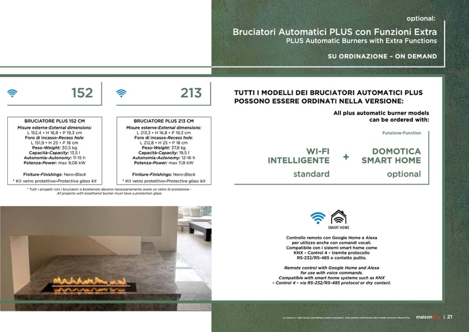 * Tutti i progetti con i bruciatori a bioetanolo devono necessariamente avere un vetro di protezione -