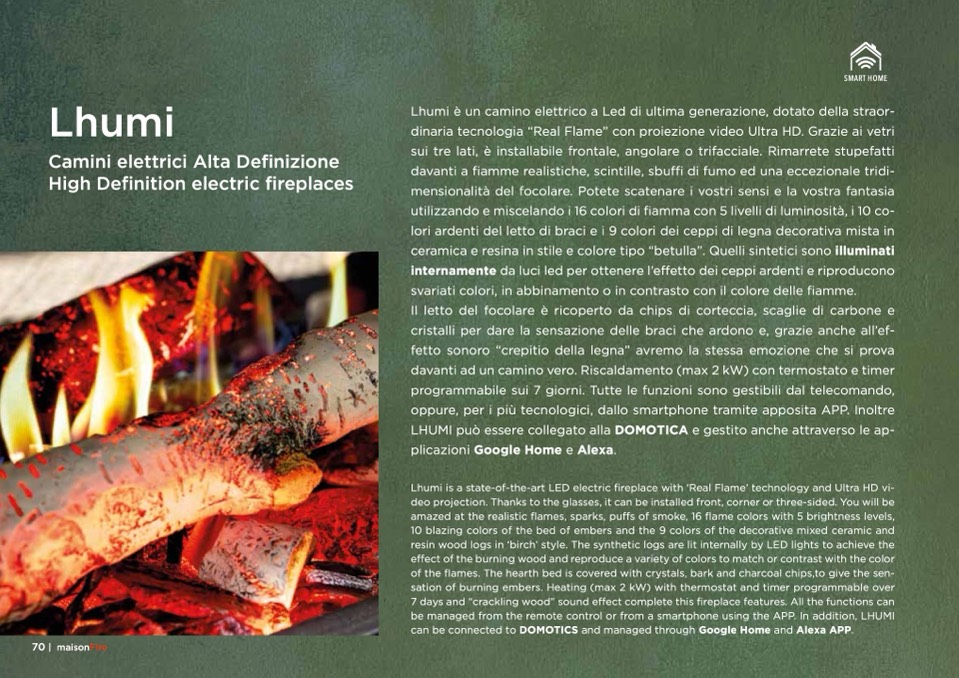 Lhumi è un camino elettrico a Led di ultima generazione, dotato della straor-