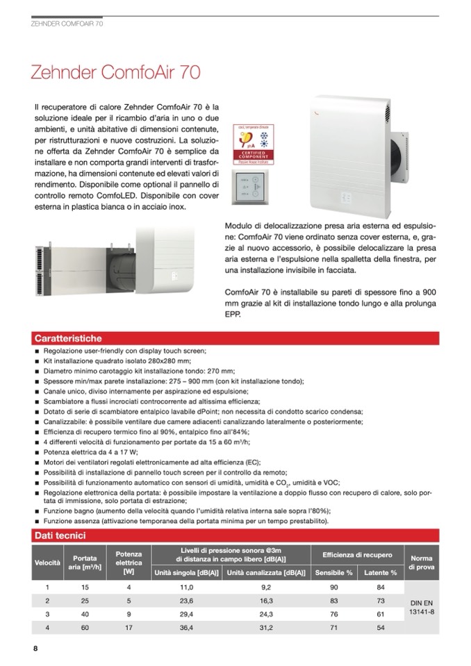 ne offerta da Zehnder ComfoAir 70 è semplice da