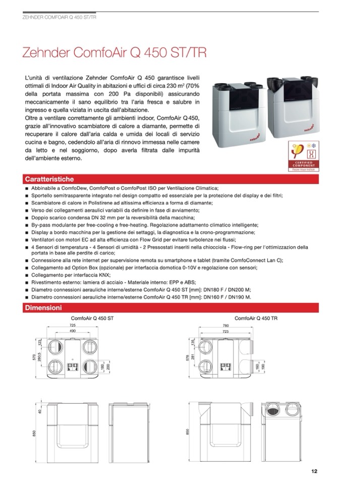 L’unità di ventilazione Zehnder ComfoAir Q 450 garantisce livelli