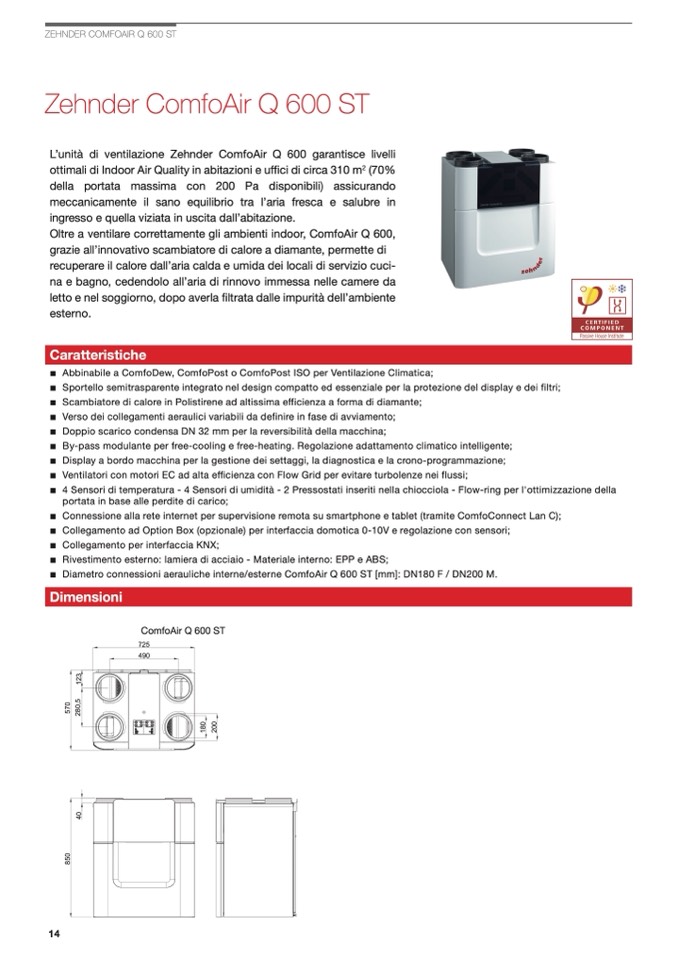 ■ Abbinabile a ComfoDew, ComfoPost o ComfoPost ISO per Ventilazione Climatica;