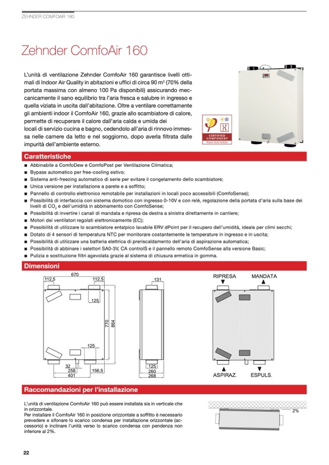 L’unità di ventilazione Zehnder ComfoAir 160 garantisce livelli otti-