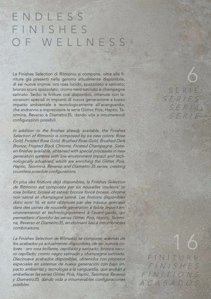La Finishes Selection di Ritmonio si compone, oltre alle fi-