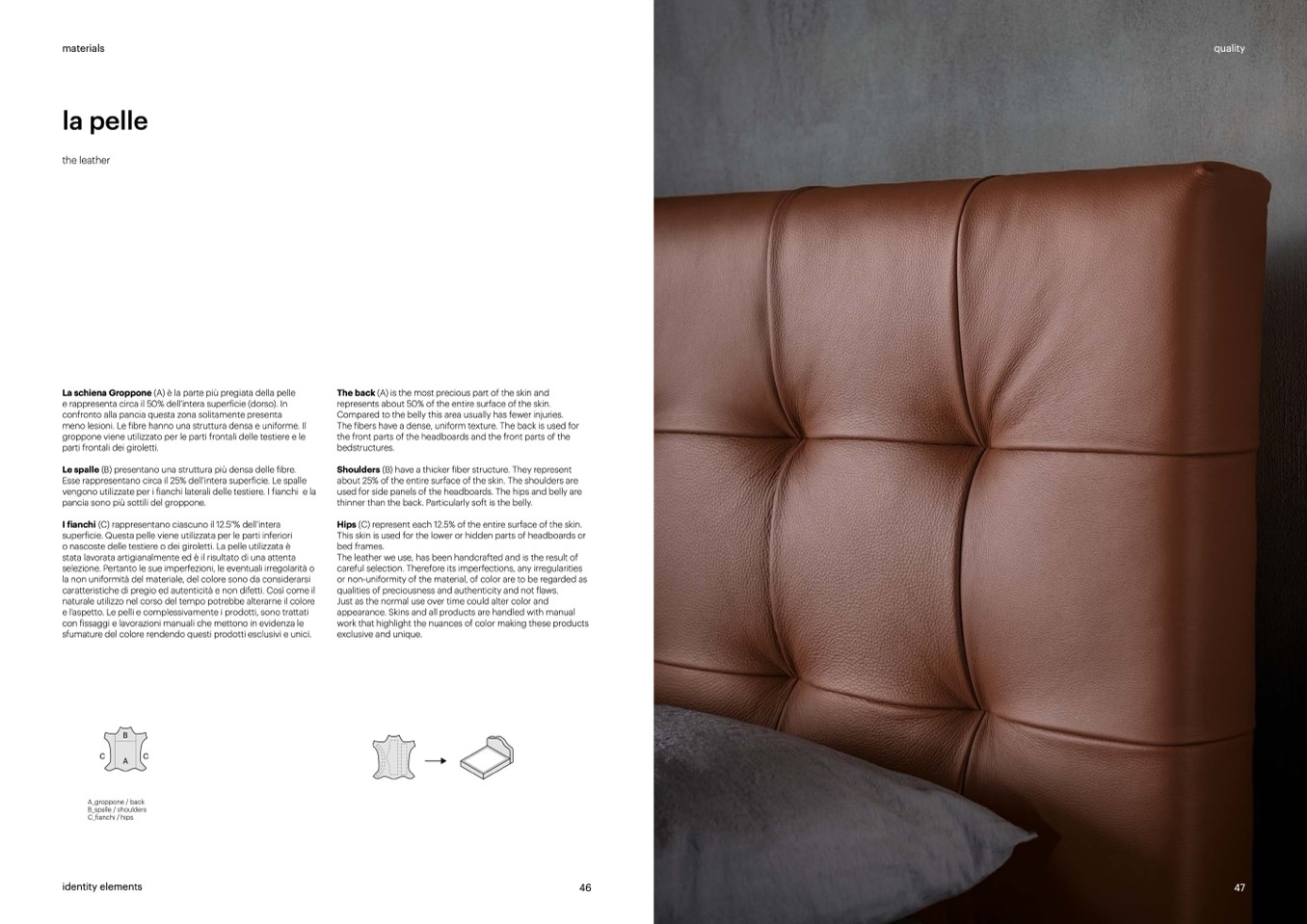 o nascoste delle testiere o dei giroletti. La pelle utilizzata è
