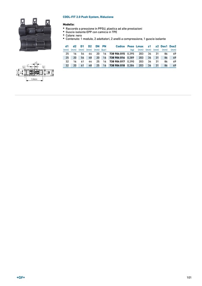 Raccordo a pressione in PPSU, plastica ad alte prestazioni