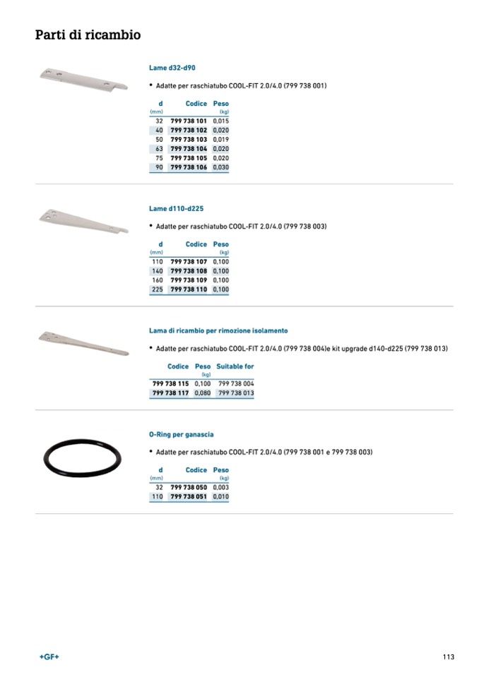 Adatte per raschiatubo COOL-FIT 2.0/4.0 (799 738 001 e 799 738 003)