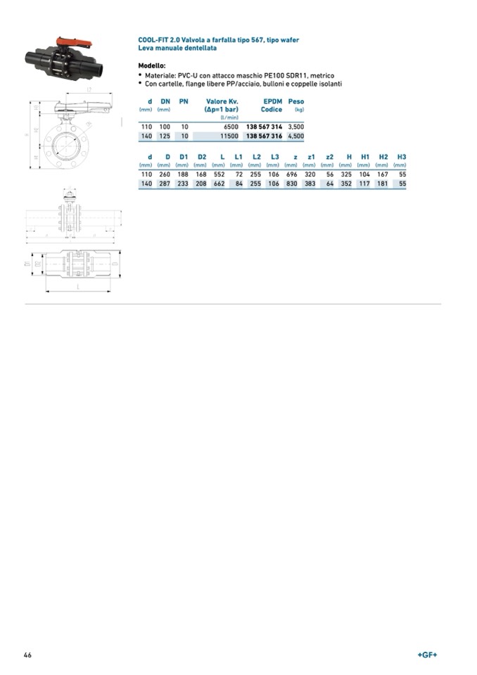 COOL-FIT 2.0 Valvola a farfalla tipo 567, tipo wafer