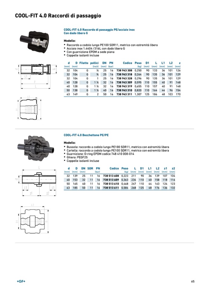 COOL-FIT 4.0 Raccordo di passaggio PE/acciaio inox