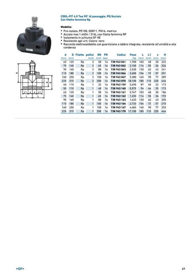COOL-FIT 4.0 Tee 90° di passaggio, PE/Acciaio