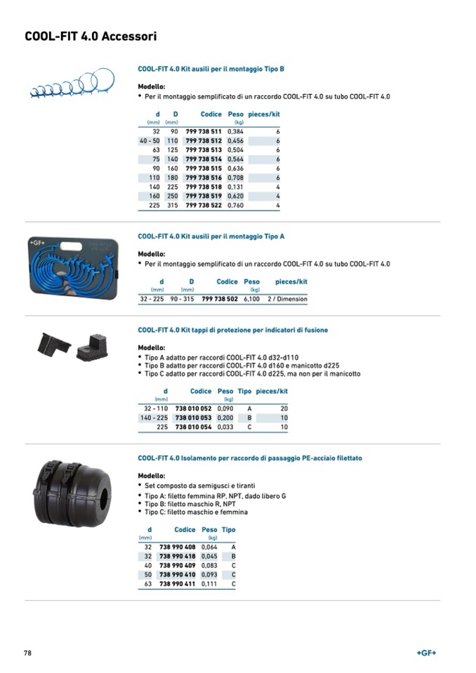 Tipo A adatto per raccordi COOL-FIT 4.0 d32-d110