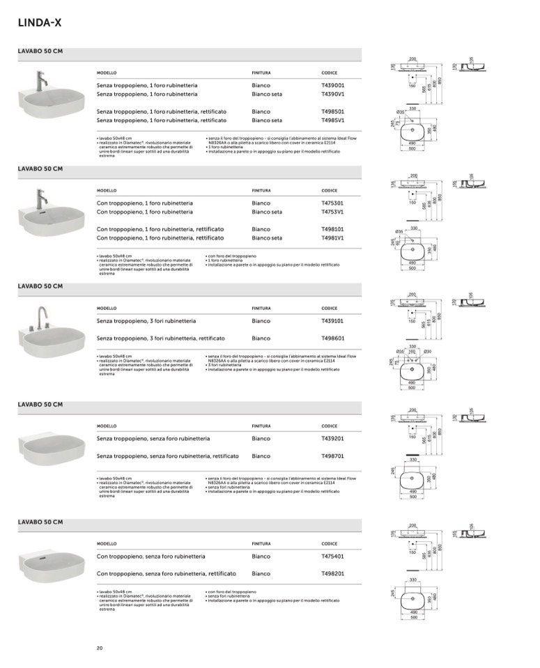 • senza il foro del troppopieno - si consiglia l’abbinamento al sistema Ideal Flow