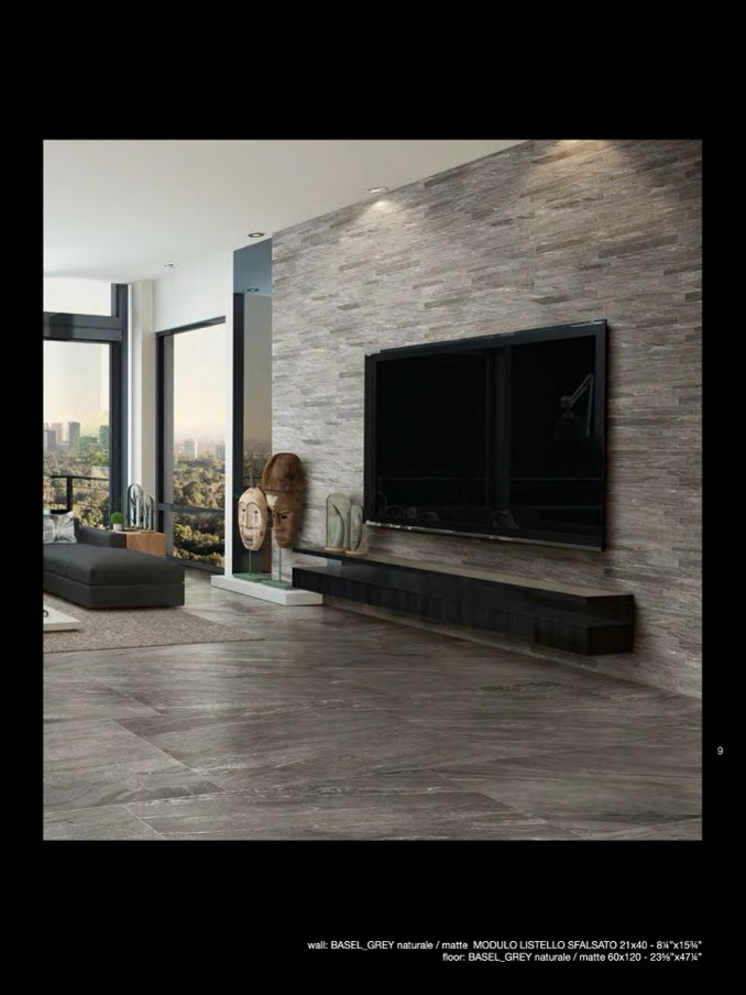 wall: BASEL_GREY naturale / matte MODULO LISTELLO SFALSATO 21x40 - 84”x15p”