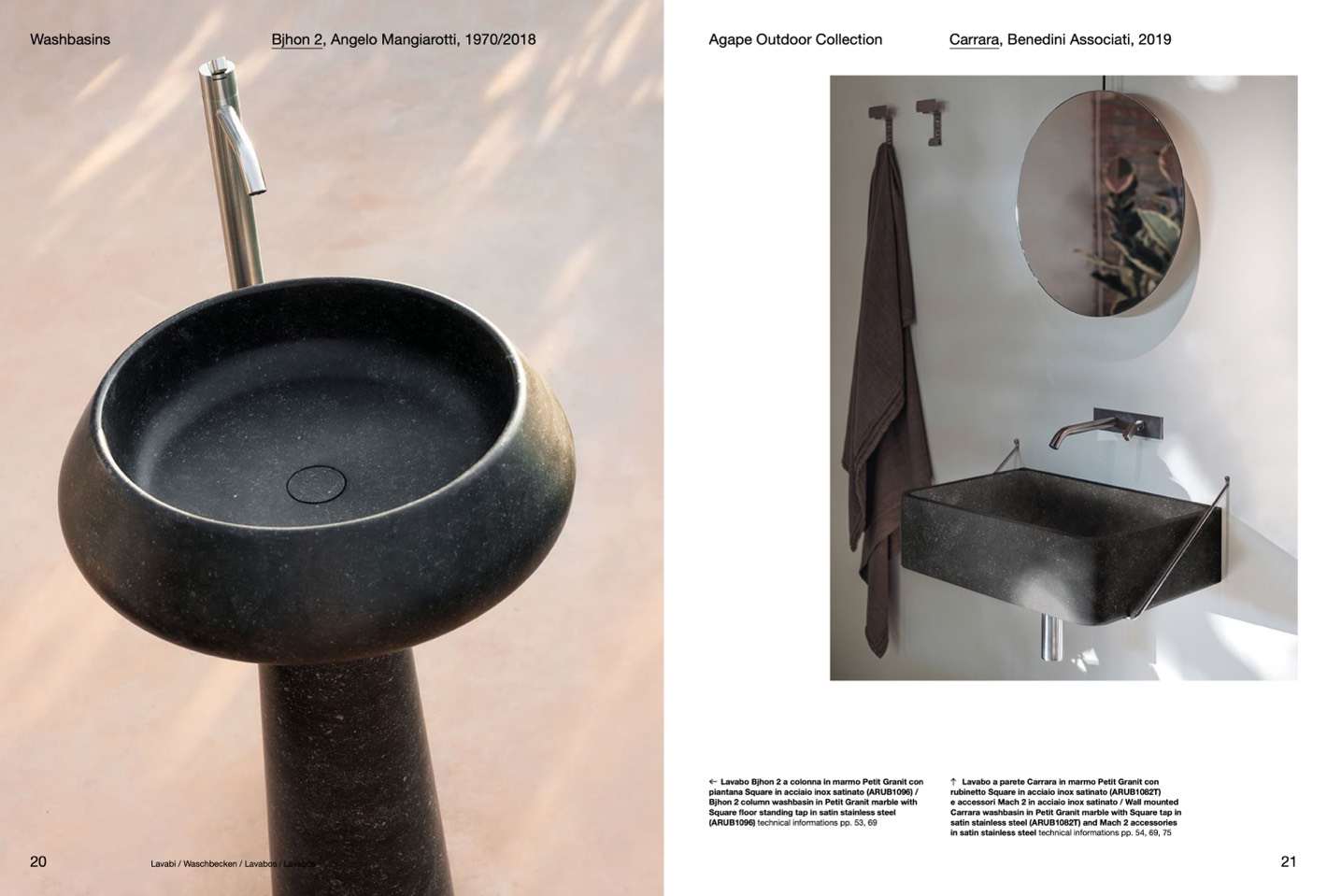 Bjhon 2 column washbasin in Petit Granit marble with